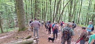 Das Wetter spielte mit, als sich die 26 Personen zählende Gruppe in Erzenhausen auf den Weg machte. Nach einer kurzen Steigung zu Beginn kamen erste Informationen von Jochen Körbel. Der Wanderführer erläuterte, warum Totholz so wichtig für den Wald ist. Viele statistische Informationen kamen vom Wanderführer Benno Müller.