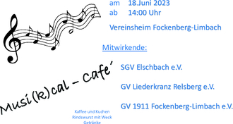 Am 18. Juni lädt der Gesangverein Fockenberg-Limbach euch zu einem Nachmittag der besonderen Art ein. Wir tauchen ein in die Welt der Musicals. Wir haben auch zwei Gastvereine eingeladen die uns helfen den Tag angenehm zu gestalten. Wir freuen uns auf euer kommen.