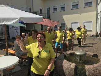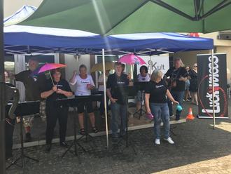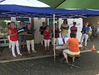 Der dritte Chor „Lucky Voices“ aus Kaiserslautern unter der Leitung von Muck (auch ein Teil der bekannten Mundartband PCB) machte seinem Namen aller Ehre. So fuhr die Stimmung hoch und fand viel Beifall, besonders bei dem Song „I´m Singing in the Rain“ als es sehr wohltuend bei 38 Grad und Sonne, plötzlich sich punktuell ein Regenschauer auftat.