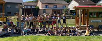 Seit letzter Woche haben die Kinder allen Grund zur Freude: der Spielplatz in der Bahnhofstraße in Schwedelbach wurde nach Renovierungsarbeiten eingeweiht und erstrahlt in neuem Glanz. Es gibt viele verschiedene Spielmöglichkeiten, die die Kinder der Kita „Kleine Freunde“ unter die Lupe genommen haben. Nachdem sich die Kinder ausgetobt- und alles genau inspiziert haben, ging es zurück in die Kita. Es war ein toller Vormittag und mit Sicherheit nicht der letzte Besuch auf dem neuen Spielplatz.