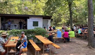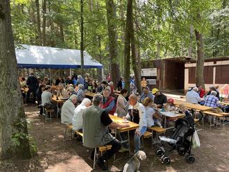 Trotz der großen Hitze fanden viele Besucher den Weg ans Wasserhaus zur Wasserhauser Kerwe. Seit 99 Jahren bereits veranstaltet der Gesangverein Rodenbach dieses beliebte Waldfest. In diesem Jahr wurde zum Mittag leckerer Spiessbraten mit Kartoffelsalat angeboten, frisch und knusprig auf dem Grill gegart. Viele bunte selbst gebackene Kuchen und Torten waren am Ende des Tages restlos ausverkauft. Erstmals wurden für die Durstigen eine Palette Bier angeboten. 6 Gläser kühles, frisch gezapftes Bier auf einer Palette - ein toller Spaß!