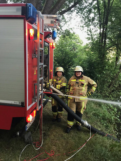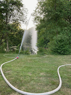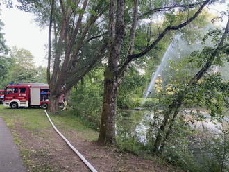 Durch die langanhaltende Hitze hat der Landschaftsweiher akuter Sauerstoffmangel. Unsere Feuerwehr hatte sich bereiterklärt mit Personal und geeignetem Gerät dem Weiher wieder Luft zu verschaffen. In mehreren Einsätzen konnte das "Kippen" des Weihers vermieden werden.