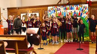Die Mackenbacher Musikantenkinder und der Schulchor der Grundschule Mackenbach stürmen unter frenetischem Beifall und Jubel ihrer Fans in die evangelische Kirche. Großes ist angesagt, geht es um das Endspiel des Kanaan Cups - Maccabi Megiddo (Schulchor) gegen Team Israel (Musikantenkinder)
