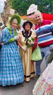 Die Leute in Ihren Biedermeierkostümen zeigten sich dem Publikum. Ebenso die Weinköniginnen aus dem Rheingau.