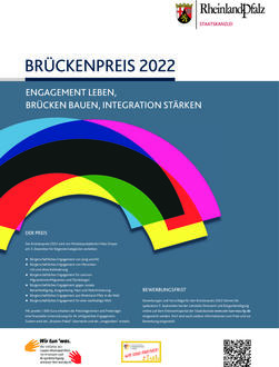 engagierten Menschen im Land will die Ministerpräsidentin auch in diesem Jahr wieder würdigen und hat dazu den Brückenpreis 2022 „Engagement leben, Brücken bauen, Integration stärken“ ausgeschrieben.
