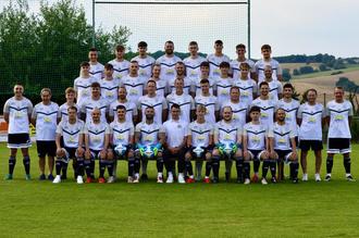 Auf dem Foto seht ihr unsere Jungs gemeinsam mit Sponsor und Geschäftsführer Sebastian Dusch [sitzend vorne in der Mitte, eingerahmt von unseren Torhütern] – stil echt in den neuen Shirts! Danke für den Support – gemeinsam stark!