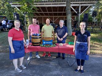 Zum ersten Mal in der Tradition wurde die Veranstaltung samstags mit einem Fassbieranstich eröffnet. Durch eine Gabe der Brauerei Karlsberg erfolgte dieser durch den Bürgermeister Markus Schick, der zugleich im Namen der Ortsgemeinde eine Spende anlässlich des 75. Vereinsjubiläums überreichte. Wie bereits in den vergangenen Jahren sorgte die Band "Groovin' Monkeys" mit schwungvollen Rhythmen für eine volle Tanzfläche und Feierlaune bei allen Besuchern, ob jung oder alt. Nur wenige Stunden nach dem Ende kehrten die ersten Gäste sonntags zum Weißwurstfrühstück und Mittagessen zum Festplatz zurück. Unter Begleitung der Musikvereine aus Sambach und Kottweiler-Schwanden herrschte auch bei sommerlich, heißen Temperaturen eine ausgelassene Stimmung.