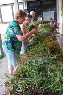 Für die „Werzwisch“ sammeln die Frauen Kräuter und Wildblumen und binden diese zu einem Strauß. Über 80 Sträuße haben die Frauen gebunden, die nach der Messe an die Besucher verteilt wurden.
