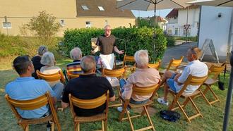 Freunde der Literatur kamen im Cafe Maronoro auf ihre Kosten. Manuela Shania Doll bot für die jüngsten Besucher eine Lesung aus ihrem Kinderbuch „Der ganz normale Hundewahnsinn“ an. „Rheinpfalz“-Redakteur Rainer Dick erläuterte den Zuhörern in teils amüsanten Anekdoten, dass „Laurel & Hardy doch nicht dick und doof waren“. Die Autorin Ursula Forster aus Eulenbis stellte ihr Buch „Die Vergangenheit wird mir noch blühen“ vor. Hierbei stehen Feldpostbriefe aus dem Zweiten Weltkrieg als tief berührende Zeugnisse ihrer Zeit im Mittelpunkt. Anregende literarische Espressi, unter dem Motto „Kaffeechen, Kaffeechen ein himmlischer Trank“ hatte Georg Brehm im Gepäck -humorvoll gereimt und ungereimt. Georg Brehm hatte zuvor eine weitere Lesung im Westpfälzer Musikantenmuseum, die dem Zitat Wilhelm Buschs folgte „Musik wird störend oft empfunden, dieweil sie mit Geräusch verbunden“. Die musikalische Umrahmung übernahm dabei Günther Mannweiler.
