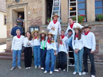 Nachdem sonntags der Kerwestrauß fast reibungslos aufgehängt war, gab Kerwerednerin Paula Wilhelm, unterstützt von Sofia Rumpf, das Dorfgeschehen mit viel Humor und spitzer Zunge zum Besten. Nichts blieb verborgen: die leeren Versprechungen der Glasfaser, der missglückte Versuch Unkraut zu entfernen und der bierliebende Dieb. Passend umrahmt wurde die Kerweredd von der Blasmusikkapelle vom Musikverein Kottweiler. Diese spielte im Anschluss im Biergarten vom Kääser weiter und sorgte für ausgelassene Stimmung. Gefeiert wurde wieder bis in die frühen Morgenstunden.