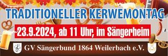 findet der traditionelle Kerwemontagsfrühschoppen im Sängerheim in den Hüttengärten statt.