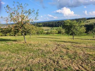 Nach einer Teilstrecke durch den Wald folgt eine wunderschöne Streuobstwiese, ehe sich die Strecke der Gemeinde Katzweiler mit der Dorfmühle nähert. Hier zeigt sich ein schweres Geläuf, bei vorhergegangenem Regen kann ein etwa 1,5 km langer Streckenabeschnitt sehr matschig sein. Was die Teilnehmer/-innen natürlich nicht am Wandern abhält: wir tragen nämlich keine Turn- sondern Wanderschuhe.