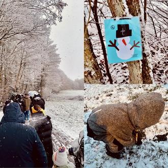 Unterwegs durften die Kinder mit ihren Eltern Schneemänner suchen, die die Kinder im Vorfeld bastelten. Jedes Schneemannbild wurde mit einem Buchstaben versehen. Zum Schluss kam das Lösungswort "Winterwanderung" dabei heraus. Die Kinder hatten sichtlich Spaß. Eine Schneeballschlacht gab es auch. Nass aber glücklich kamen wir zurück in die Kita, wo uns ein kunterbuntes und üppiges Buffet erwartete sowie verschiedene Spielangebote für die Kinder.