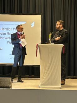 Im Anschluss an den offiziellen Teil standen die zahlreichen Gäste bei interessanten und netten Gesprächen noch lange zusammen - auch oder das Wichtigste bei einem Empfang für die Bürgerinnen und Bürger: Das gemeinsame Gespräch. Für musikalische Unterhaltung sorgten Klaus Schnepp am Saxophon und Werner Köhl am Klavier