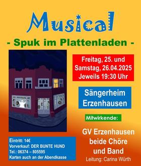 Große Ereignisse werfen ihre Schatten voraus: Im Frühjahr führt der GV Erzenhausen sein erstes Musical auf. Das Stück aus der Feder von Ralf Schön präsentieren wir am Fr, 25. und Sa, 26. April im Sängerheim Erzenhausen, Beginn jeweils um 19:30.