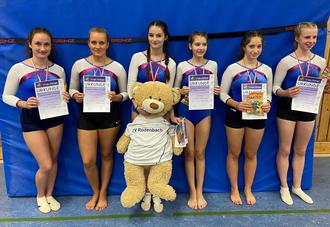 Im zweiten Durchgang traten dann die älteren Mädels in den Gaumeisterschaften an. Hier turnten Helen Schmidt, Emely Jung, Lara Hadbawnik, Amelie Burkart, Luisa Hach und Anna Bertram.