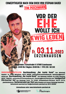 An diesem Abend steht der Comedian Tim Poschmann mit seinem Programm „Vor der Ehe wollt ich ewig Leben“ auf der Bühne.