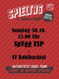 Sonntag 30.10., 15:00 Uhr: SpVgg ESP – SV Kohlbachtal
