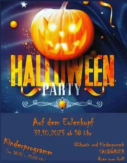 am Dienstag, den 31.10.23 ab 18 Uhr findet unsere alljährliche Halloween-Party auf dem Eulenkopf statt. Unsere Kleinsten dürfen sich auf ein gruseliges Kinderprogramm von 18:30- 20 Uhr freuen.