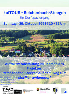 Im Rahmen des TRAFO-Projektes „Westpfälzer Musikantenland“, hat sich Reichenbach-Steegen um die Ernennung zum „Musikantenlanddorf“ beworben. Im Zuge dessen finden in den kommenden Monaten kleinere und größere Veranstaltungen statt, bei welchen es in erster Linie darum geht, das kulturelle Leben in der Gemeinde zu erleben, zu fördern und auszubauen. Mit dem Ziel, die Gemeinschaft und Identifikation zu stärken.