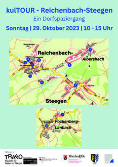 Unter diesem Motto laden die Verantwortlichen des Projektes „Reichenbach-Steegen auf dem Weg zum Musikantenlanddorf“ alle Bürgerinnen und Bürger der Gemeinde und darüber hinaus herzlich zu einem Spaziergang durch unser schönes Heimatdorf ein. Über das ganze Dorf verteilt finden Sie verschiedene Stationen, an welchen Sie das Dorfleben erkunden, neues entdecken und mit Menschen ins Gespräch kommen können.