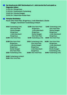 Außerdem wurde für den Tag ein Shuttleservice eingerichtet, mit dem Sie ab 10.15 Uhr im 45-Minuten-Takt die einzelnen Ortsteile anfahren können.