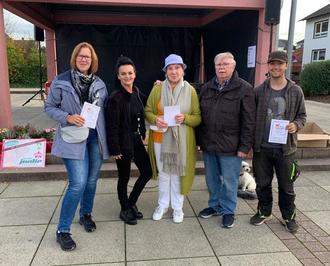 Bei den abgebildeten Personen - von links - handelt es sich um Frau Ningelgen – Friseurteam, Frau Janke – Blumen Janke, Frau Ünaldi-Sabancilar – Optikus Augenwelt und Frau Köhl mit Tochter – Köhl Rollladen- u. Sonnenschutztechnik