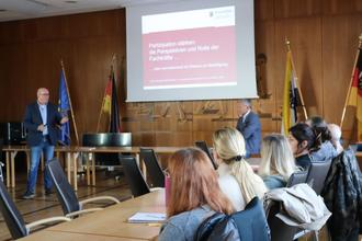 Prof. Dr. Stephan Gros von der Deutschen Universität für Verwaltungswissenschaften Speyer informierte die Anwesenden über die grundsätzlichen Aspekte des Projekts. „Jugendliche sehen sich oft nicht ernstgenommen“, erklärte er, „dabei hat die Bereitschaft der jungen Menschen, sich zu engagieren, bedeutend zugenommen.“ Hier müsse darauf geachtet werden, dass Jugendliche immer beteiligt werden, wenn es um Projekte geht, die sie direkt betreffen. „Man kann nicht einfach einen Skaterpark bauen, ohne vorher zu fragen, ob das vonseiten der Jugendlichen überhaupt gewünscht ist“, nannte er ein Beispiel.