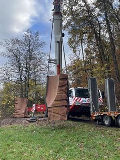 Am vergangenen Samstag wurde in Rodenbach am Fußweg zwischen Alte Steige und Hundeheim eine neue Skulptur aufgebaut. Die Arbeit des Künstlers Christian Hinz, mit dem Titel „Angel of Peace“, entstand während des Bildhauersmposiums 2023, organisiert durch den Skulpturenverein Rheinland-Pfalz e.V. vom 30.7.-26.8.2023 im Steinbruch Picard im Schweinstal.