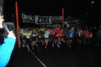 Pünktlich zum Start des Hauptlaufs legte der Regen eine Pause ein – starker Wind, der über die Felder blies, machte es jedoch schwierig, die Fackeln am Wegrand zu entzünden. Unter erschwerten Bedingungen, da der Wind nicht nur Einfluss auf die Läufer, sondern auch auf die Brenndauer der Fackeln hatte, ging es auf die Strecke, getragen von der Stimmung der brennenden Fackeln, einem Lichterbogen und jubelnden Zuschauern am Berghof sowie zahlreichen Unterstützern an der Strecke konnte sich Tim Könnel vom TuS Heltersberg in einer Zeit von 22:19 Minuten zum 8. Mal in Folge den Sieg sichern, wie im vergangenen Jahr vor Nico Steißlinger (ABC Ludwigshafen) mit 22:42. Dritter wurde Max Kirschbaum (LG Ohmbachsee) in einer Zeit von 23:55 Minuten.