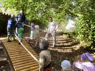 Dank des Engagements der Handwerker Felix Held und Erhard Helfenstein dürfen sich die Kinder der Kindertagesstätte Lummerland in Reichenbach-Steegen über eine altbekannte Attraktion im Außenbereich freuen. Die beiden Handwerker haben das Kletterspielgerät in Eigenarbeit hergestellt und übernahmen auch die Montage vor Ort.
