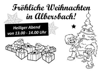 Wie jedes Jahr spielt der Musikverein Reichenbach e.V. Weihnachtslieder und es gibt zum Aufwärmen Glühwein! Der Heimatverein Albersbach wünscht eine schöne Weihnachtszeit, friedliche Feiertage und alles Gute für das neue Jahr!