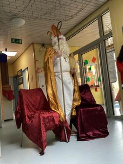 Und dann war es soweit. Alle haben sich im Flur versammelt und der Nikolaus kam herein. Jede Gruppe hatte ein Lied, ein Gedicht oder ein Fingerspiel für ihn vorbereitet.
