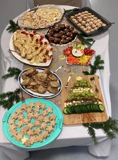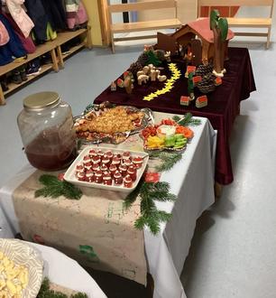 Am 14.12.22 gab es für die Kinder ein leckeres Weihnachtsfrühstück. Im Flur wurde das Buffett aufgebaut und liebevoll angerichtet. Gemeinsam wurden die Lieder „Oh Tannenbaum“ und „Schneeflöckchen Weißröckchen“ gesungen. Im Anschluss wurde dann gemeinsam in den Gruppen gefrühstückt.