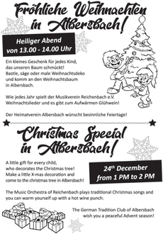 Wie jedes Jahr spielt der Musikverein Reichenbach e.V. Weihnachtslieder und es gibt zum Aufwärmen Glühwein!