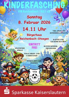 Zwei Tage später findet dann sonntagnachmittags ab 14:11 Uhr der große Kinderfasching des VfB Reichenbach 1921 e. V. statt. Hier darf sich der Tanznachwuchs auf die Freundinnen und Freunde aus Kindertagesstätte und Schule freuen. Alle gemeinsam feiern mit Eltern und Großeltern den bunten Kinderfasching.