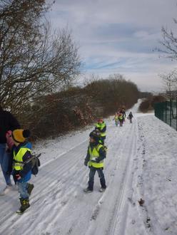 Nach der ausgiebigen Führung bekamen wir zum Abschluss ein Kaffeestückchen und eine Brezel. Den Ausflug beendeten wir mit einem gemeinsamen Spaziergang durch den Schnee zurück in die Kita.