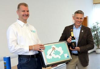 dass der Versuch, die leere Kreiskasse etwas aufzufüllen, bei allen Bemühungen nicht so recht gelungen war. Allerdings gab er das Leergut des Landratssekts zurück, das er bei der Schlüsselübergabe vom Landrat bekommen hatte – nun war die Sektflasche mit 11,11 Euro in ein Cent-Münzen prall gefüllt. Diese Überraschung freute auch Kämmerer Thomas Lauer.