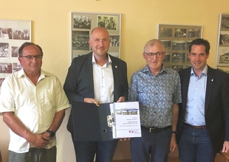 Übereisenbach im Dorfgemeinschaftshaus: Übergabe des Ergebnisberichtes des Zukunfts-Check Dorf am 31. August 2022 an den Ortsbürgermeister Albert Theis und die Bürgerinnen und Bürger durch Landrat Andreas Kruppert im Beisein von Verbandsgemeindebürgermeister Moritz Perty