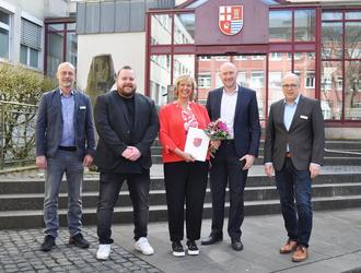 Landrat Kruppert dankte der Jubilarin für ihre betriebliche Treue und ihre Leistung und überreichte mit vielen guten Wünschen für den weiteren Lebensweg und die berufliche Tätigkeit bei der Kreisverwaltung die Dankurkunde. Den guten Wünschen schlossen sich Büroleiter Carl Diederich und Fachbereichsleiter Alois Klein an. Mario Schuh gratulierte für den Personalrat.