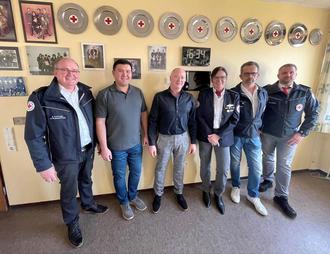Von links: DRK-Kreisgeschäftsführer Rainer Hoffmann, stellv. Kreisbereitschaftsarzt Timur Iusupov, Kreisbereitschaftsarzt Ludwig Carl, Kreisbereitschaftsleiterin Andrea Schneider, Kreisbereitschaftsleiter Arnold Schneider, stellv. Kreisbereitschaftsleiter Frank Mayer (Foto: DRK Kreisverband).