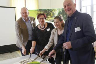 Von links: Landrat Andreas Kruppert, Francine Keiser, Lynn Schüssler und Klaus Schäfer (Foto: Eifel Tourismus GmbH/Petra Grebe).
