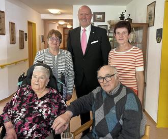 Die im Seniorenhaus Berghof in Neuerburg lebenden Eheleute Marga und Adolf Hoffmann hatten am 27. April 1960 standesamtlich geheiratet und konnten nun das seltene Fest der Eisernen Hochzeit feiern. Zum Festtag gratulierten der Kreisbeigeordnete Rudolf Rinnen, für die VG Südeifel die Beigeordnete Suzette Weber sowie für die Stadt Neuerburg Stadträtin Brigitte Pesek.
