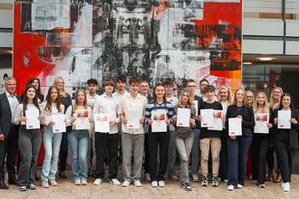 Bei der Feierstunde überreichten Sparkassenvorstand Frank Propson und Irene Mees, Bereichsleiterin Unternehmenskommunikation, die Preise. Insgesamt wurden Geldpreise im Wert von über 1.000 € vergeben. Das nächste Planspiel Börse startet am 1. Oktober. Mehr unter www.planspiel-boerse.de.