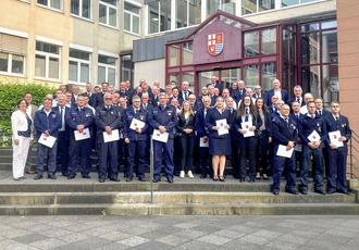 Für 35- bzw. 45-jährigen aktiven Feuerwehrdienst haben 80 Feuerwehrmänner und zwei Feuerwehrfrauen der Feuerwehren im Eifelkreis Bitburg-Prüm das Feuerwehr-Ehrenzeichen der Stufe II (Gold) erhalten.