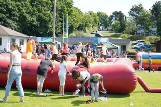 Nach zweijähriger Corona-Zwangspause war die Astrid-Lindgren-Schule wieder Ausrichter des traditionellen Integrativen Spiel-und Sportfestes im Prümer Stadion „In der Dell“. Mehr als 260 Aktive mit und ohne Handicap, von Förderschulen aus dem gesamten Bezirk, vom Integrativen Kindergarten den Westeifelwerken, und der Grund-und Realschule Prüm konnten gemeinsam Sport-spielerisch und ohne Leistungszwang betreiben.