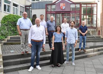 Vordere Reihe von links: Landrat Andreas Kruppert, Claudia Mohr, Stefan Borens (beide Klimaschutzmanagement). Hintere Reihe von links: Helmut Berscheid (Amtsleiter Amt 04), Peter Zentner (Energieagentur RLP), Carl Diederich (Büroleiter), Stefan Beyer (Energieagentur RLP), Manfred Hamm (Klimaschutzmanagement). Foto: Konder/Kreisverwaltung