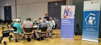 Im Rahmen des bundesweiten Digitaltags 2022 und als Vorprogramm der abendlichen Auftaktveranstaltung des Modellvorhabens konnten hier Seniorinnen und Senioren Ihre Fragen stellen und erhielten Unterstützung im Umgang mit Smartphone, Tablet und Internet. In ungezwungener Atmosphäre fand ein reger Austausch statt, wurden WhatsApp-Probleme gelöst und Kontakte geknüpft.