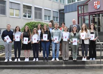 Im Rahmen der Ernennungsfeier am 28. Juni 2024 ernannte Landrat Andreas Kruppert zehn neue Anwärterinnen und Anwärter zu Beamten auf Widerruf. Sechs streben das duale Studium im Studiengang Verwaltung an und vier die Ausbildung zum/zur Verwaltungswirt/in.