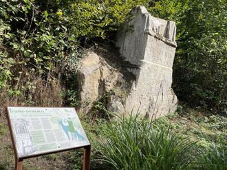 Eine Info-Tafel steht auch am Ferschweiler Plateau in der Nähe von Schloss Weilerbach. Dort befindet sich der Sockel des Diana-Denkmals mitten im Wald am Fuß der Niederburg mit der Inschrift „Deae Dianae Q(uintus) Postumius Potens V(otum) S(olvit) – Der Göttin Diana hat Quintus Postumius Potens (den Stein gewidmet und) das Gelübde erfüllt.“ Im 2. Jahrhundert wurde das Denkmal, von dem nur noch der Sockel übriggeblieben ist, als Weihedenkmal zu Ehren der römischen Göttin Diana errichtet. Der Sage nach hat der heilige Willibrord persönlich im Zuge der Christianisierung der Region das Denkmal zerstört.